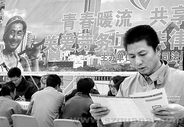 2007年2月22日,由市司法局組織的“將石社區關愛勞務工法律援助送溫暖”活動在華安商業城廣場面場拉開帷幕。市法律援助處、市普法辦、市公證處等部門的22名法律工作者,現場為外來勞務工提供法律咨詢、法律援助服務,截至下午四時,共接受現場咨詢534人次,現場接受法律援助申請75宗,派發法律書籍和資料20000份,近萬名外來勞務工參與了活動。(通訊員 楊涌 晶報記者 溫文鋒 攝影報道)