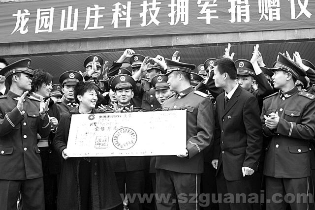 關愛部隊,科技擁軍。2007年01月25日上午,深圳某公司(龍園實業發展有限公司)向深圳邊防七支隊捐贈100萬元的科技擁軍???。 據了解,捐贈的100萬元科技擁軍資金被全部用于部隊購買電腦等高科技設備,以支持部隊現代化信息建設,為官兵們掌握現代化科技知識提供堅強有力的條件。
