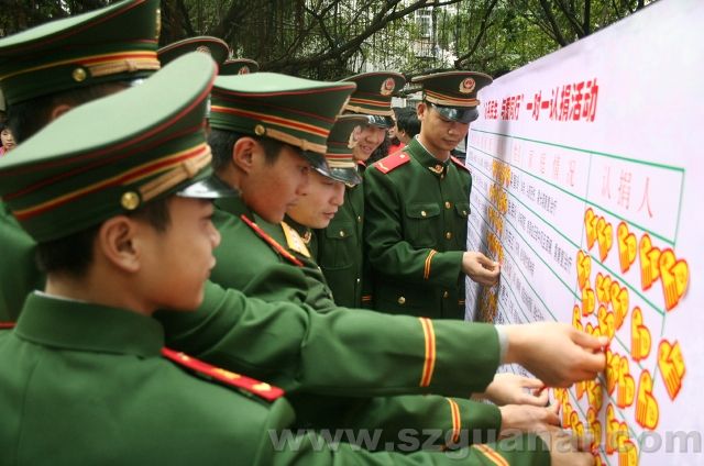 2007年2月5日上午,深圳公安邊防支隊在機關舉行了捐款捐物儀式,在當天的活動中,該支隊官兵共捐款40517元,捐衣物118件,鞋15雙。( 曾燁 通訊員 黃慶鋒 陳森陽 攝影報道)