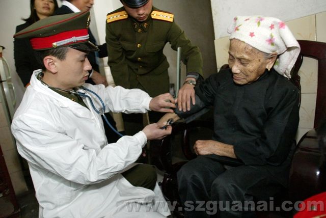 平湖街道辦事處婦聯(lián)主席、平湖巾幗互助會會長、平湖駐軍醫(yī)生慰問孤寡老人97歲孤寡老人黃榮泰(程海昆)