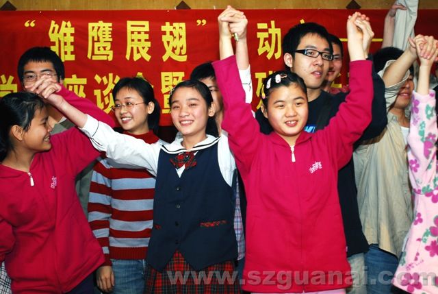 大學生與結對孤兒手牽手(陳錦輝攝)
