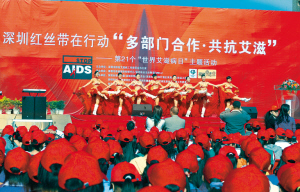 今天是第21個世界艾滋病日,今年的宣傳主題是“履行承諾,控制蔓延”,昨天上午,市防艾辦在龍城廣場主辦了一個名為“深圳紅絲帶在行動‘多部門合作,共抗艾滋’”主題宣傳活動。兩位戴著鴨舌帽、口罩和太陽眼鏡的男子很引人注目,作為我市18位經濟困難艾滋病人的代表,他們勇敢地站上了舞臺,接受了市紅十字會的捐助。據了解,這次是我市首次大規模對經濟困難艾滋病人發放補助,市紅十字會副秘書長陳壯透露,今后市紅十字會將會為經濟困難的艾滋病人成立專項救助基金。