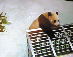 大熊貓“圓圓”狀態(tài)良好,在欄舍里頑皮地爬上爬下。