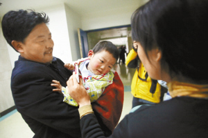 16日下午2點多,因無錢醫治身患白血病的兒子,河北人李貴樹夫婦決定放棄治療。在天津火車站,他們偶遇結束在天津調研準備返京的溫家寶總理。溫總理得知情況后,當即指示將這名2歲男童李瑞送京治療。16日下午,小瑞入住北京兒童醫院接受治療。17日上午,國辦工作人員又專門來到醫院,將總理捐獻的1萬元現金送到了李瑞母親王志華的手中。