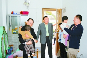 寶安區慈善會會長何植洪(左一)、常務副會長張文樞(右一)等到寶安社會福利中心看望孩子們。 通訊員 李光裕 攝