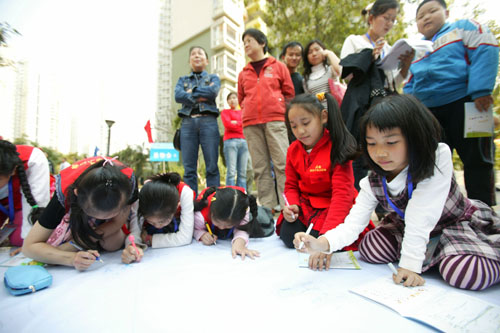 晶報陽光小記者用手中的筆畫出和諧鄰里