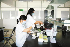 市農產品股份有限公司工作人員對蔬菜進行檢測