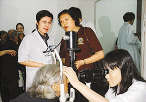 匯宗藥業(yè)總經(jīng)理鄭小愛在江西參加“光明行”活動(dòng),為當(dāng)?shù)刎毨О變?nèi)障患者免費(fèi)實(shí)施復(fù)明手術(shù)