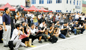 中外媒體高度關(guān)注此次捐助板房啟運儀式。