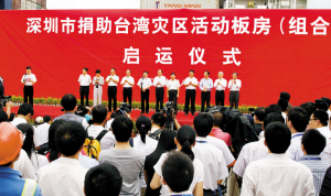 深圳市捐助臺灣災(zāi)區(qū)活動板房(組合屋)啟運儀式現(xiàn)場。