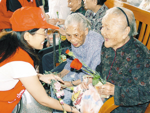 羅湖區義工中秋看望福利院老人,送去鮮花禮品。