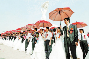 幾十對來深建設者參加南山區“鴛鴦和鳴”集體婚禮。