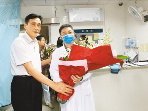 市關(guān)愛(ài)辦主任、深圳報(bào)業(yè)集團(tuán)社長(zhǎng)黃揚(yáng)略為醫(yī)護(hù)人員送去鮮花。