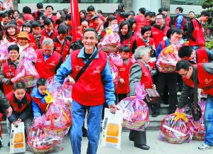 8年的堅持,匯聚成一面面愛心旗幟,高高飄揚在鵬城上空。關(guān)愛,成為兔年新春最動人的音符。昨天(2月1日)上午9時,由市關(guān)愛辦、深圳晚報社主辦的“溫暖年夜飯全城愛心大行動”拉開帷幕,當天深圳晚報百名采編人員、望家歡公司員工和百名熱心市民攜手,為全市120戶特困家庭送去年夜飯大禮籃和溫馨祝福。與此同時,由數(shù)家愛心企業(yè)提供的數(shù)百份“愛心簡餐”也送到了無家可歸者、在救助站里的留守人員以及特困勞務(wù)工的手中。