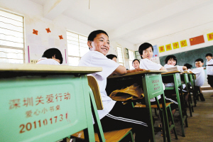 昨天是“六一”兒童節(jié),江西省贛州市于都縣羅江鄉(xiāng)洋坑小學(xué)的孩子們收到了一份來(lái)自深圳的特殊禮物——由深圳安華投資發(fā)展有限公司捐贈(zèng)的1000張“愛(ài)心小書(shū)桌”,在多年使用破舊不堪的書(shū)桌后,孩子們終于擁有了嶄新的小書(shū)桌。