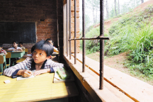 洋坑小學(xué)所在的于都縣是國(guó)家扶貧開(kāi)發(fā)重點(diǎn)縣,在全縣過(guò)百萬(wàn)的人口中,有30多萬(wàn)人常年在外打工,縣里的20多萬(wàn)中小學(xué)生中有80%都是留守兒童。洋坑小學(xué)共有12個(gè)班,580多名學(xué)生,原來(lái)的小書(shū)桌大多都是木制,經(jīng)過(guò)多年的修補(bǔ),普遍搖搖欲墜,破爛不堪。