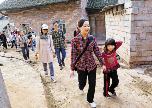孫影帶著深圳市關愛辦、深圳晚報、中航物業公司工作人員及市民代表一行在拉魯村走訪。