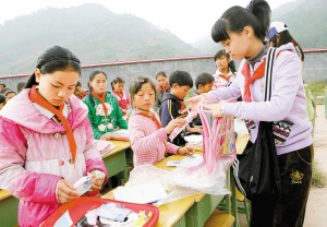 ????全國道德模范、長期支教貴州大方縣的深圳志愿者孫影是“愛心小書桌”活動的發起者。11月5日一大早,市民們在孫影的帶領下,一路顛簸,來到了位于大方縣響水鄉的岔河小學,“愛心小書桌”第三批發放儀式就在這里舉行。