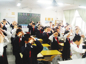 鹽田區鹽港小學同學們在練習感恩手語操。