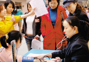 深圳愛心組織開展義診活動,為外來女工檢查身體。(資料圖片)