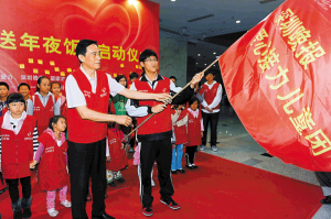 啟動儀式現場,溫馨而熱鬧,“用愛擁抱每一天,用心感動每個人”的巨幅標語,懸掛在商報大廈一樓大堂。深圳報業集團副總編輯、深圳晚報總編輯丁時照主持了啟動儀式。丁時照介紹說,今年,“‘為特困家庭送年夜飯活動’是深圳晚報‘新春記者走基層’的一次集體行動。這個活動,我們堅持做了9年,未來還將繼續。我們還要邀請更多的愛心企業和愛心市民加入,讓更多的特困家庭享受到社會的關愛;讓我們都來努力,為困難家庭撐起一片艷陽天。”