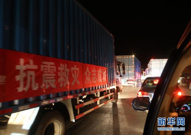 4月20日,運送救援物資的車輛從成都向雅安蘆山方向行駛。當日,四川雅安蘆山縣發生7.0級地震。其中蘆山縣的龍門鄉、寶盛鄉、太平鎮三地受災最為嚴重。新華社記者 邢廣利 攝