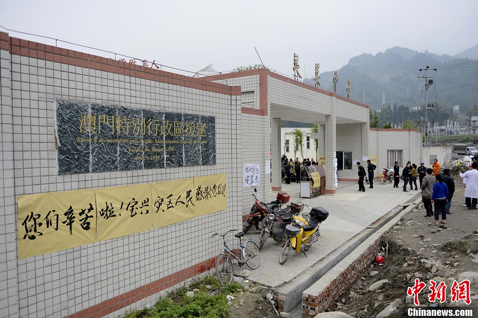 4月21日,四川省雅安市寶興縣靈關鎮,由澳門援建的靈關中學設為災民安置點。中新社發 廖攀 攝