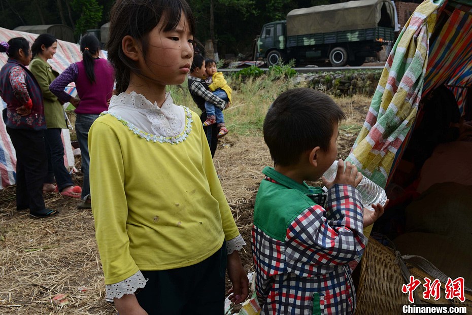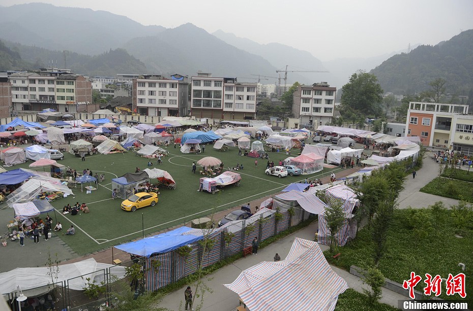 4月21日,四川省雅安市寶興縣靈關鎮,靈關中學災民安置點。廖攀攝