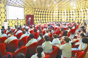 開學(xué)現(xiàn)場(chǎng),家長們認(rèn)真聽心理咨詢老師講課。