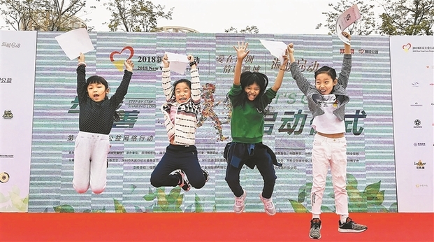 香蜜公園活動(dòng)現(xiàn)場,“步步行善”小跑友高興地跳起來。