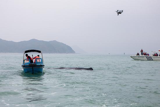2017年3月,一頭抹香鯨在大亞灣海域迷航擱淺,并引發(fā)廣泛關注。深惠港三地緊密合作,展開一場“政府主導、專家領銜、社會參與”的抹香鯨緊急救護大行動。抹香鯨不幸死亡后,專家學者們精心制作了抹香鯨系列標本,用于開展科學普及以及保護海洋環(huán)境、愛護海洋動物的宣傳教育。