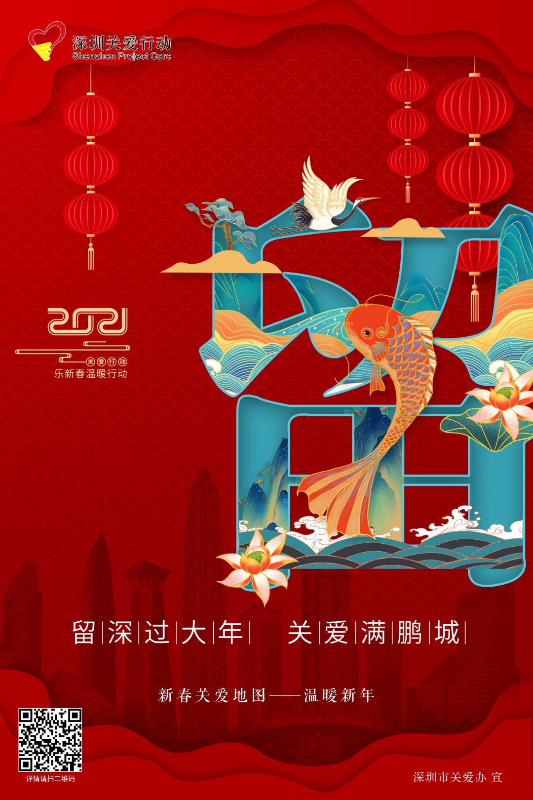 為豐富留深過年市民新春文化生活,讓廣大市民在深圳度過一個溫暖、祥和、豐富、有意義的新春佳節,第十八屆深圳關愛行動“樂新春”溫暖行動在全市各區閃亮推出。“溫暖新年”“健康新年”“藝術新年”“網趣新年”“創益新年”五大主題板塊首期將開展近百項關愛活動,讓留深的你歡樂過大年。