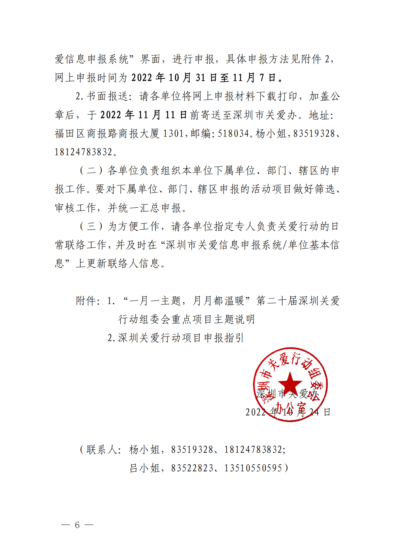 關(guān)于做好第二十屆深圳關(guān)愛行動組織策劃和項目申報工作的通知