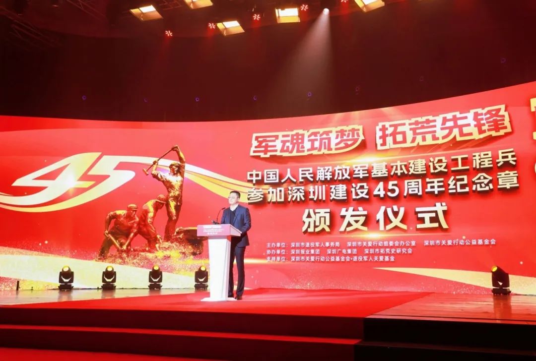 12月28日下午,以“軍魂筑夢 拓荒先鋒”為主題,“中國人民解放軍基本建設(shè)工程兵參加深圳建設(shè)45周年紀(jì)念章”頒發(fā)儀式在深圳廣電集團(tuán)800演播廳舉行。近300名原基建工程兵老兵、退役軍人代表與來自社會(huì)各界的嘉賓代表歡聚一堂。